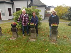 Die Schalen wurden gepflanzt im Bild v.l. Rudi Bodenschatz, Angelika Rochow und Gerlinde Baderschneider