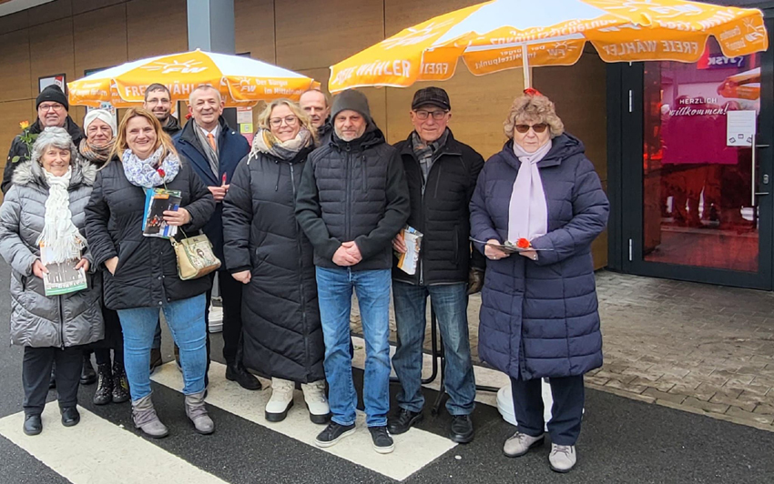 Am heutigen Valentinstag waren die Stadtratskandidaten der Freie Wähler Naila und der ÜWG Naila vor dem REWE-Markt in Naila im Einsatz.